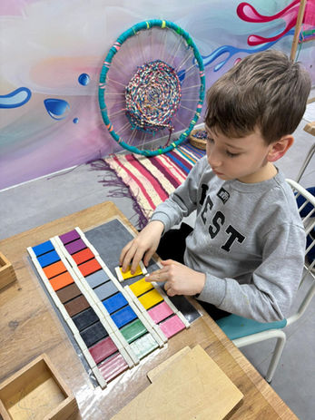 Sanat Atölyemiz, Montessori’nin “eller aracılığıyla öğrenme” ilkesine dayalı olarak yapılandırılmıştır.